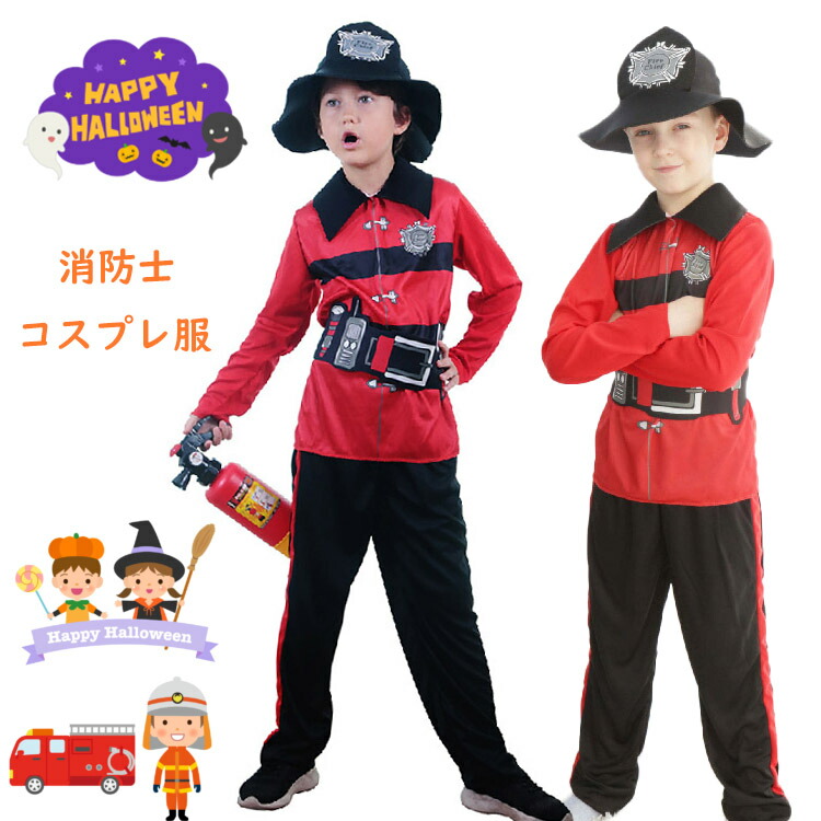 ハロウィン 衣装 子供 消防士 コスプレ キッズ 女の子 男の子 消防服 消防隊員 仮装 男女兼用 コスプレ 演出 2歳 95-150cm