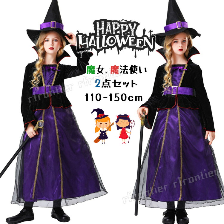コスプレハロウィン ワンピース 魔女 女の子 コスチューム 変装 可愛い ドレス キッズ ウィッチ 魔女っ娘 パーティー ハロウィーン