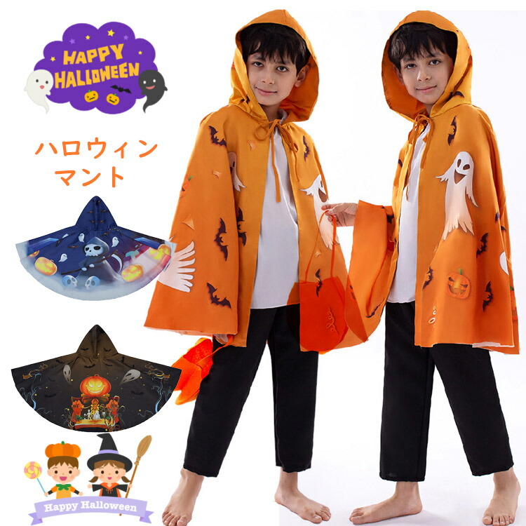 ハロウィン 衣装 子供 魔女 コスプレ 橙 マント 女の子 男の子 男女共用 コスプレ キッズ 黒 マント 2歳 110-140