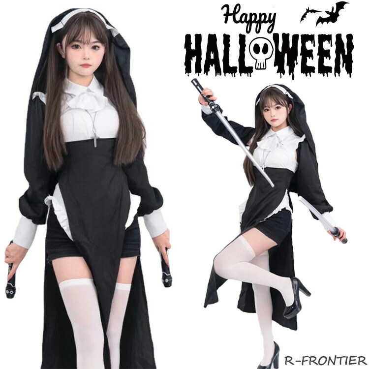 ハロウィン 仮装 大人 女性 シスター コスプレ セクシー 可愛い 修道女 聖女 牧師 宣教師 修道服 教会 黒