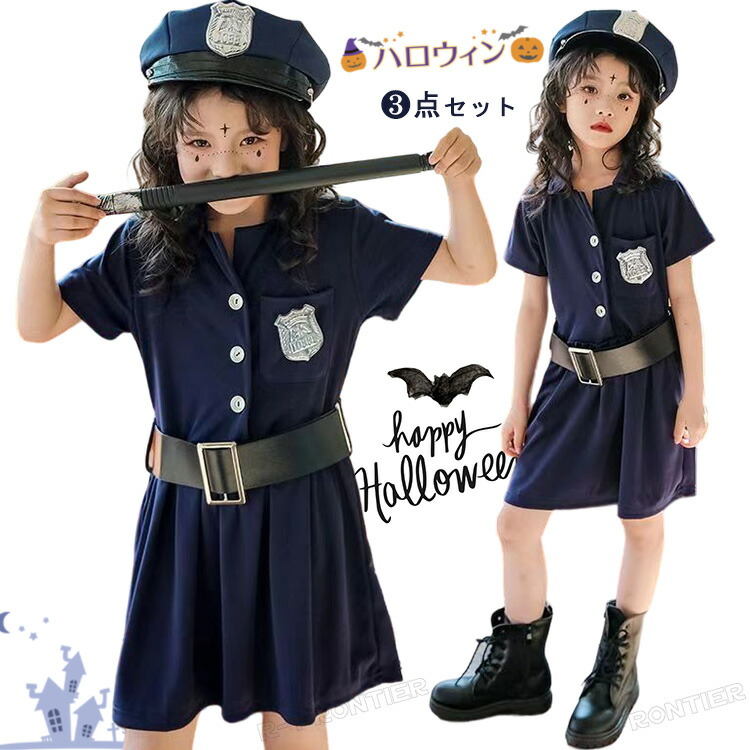 ハロウィン 子供コスプレ 警察コース 女の子 ポリスコスプレ衣装 仮装 ハロウィン コスチューム 帽子 Halloween ポリスコス 90 150