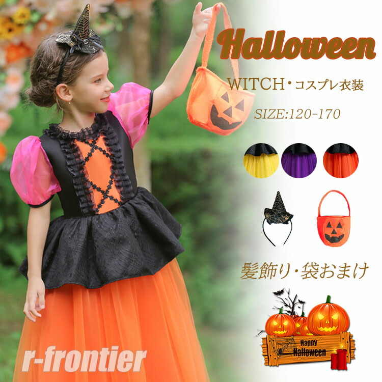 ハロウィン コスプレ 魔女 ワンピース 子供 女の子 衣装 仮装 可愛い ドレス キッズ ウィッチ 魔女っ娘 パーティー ハロウィーン Halloween cosplay