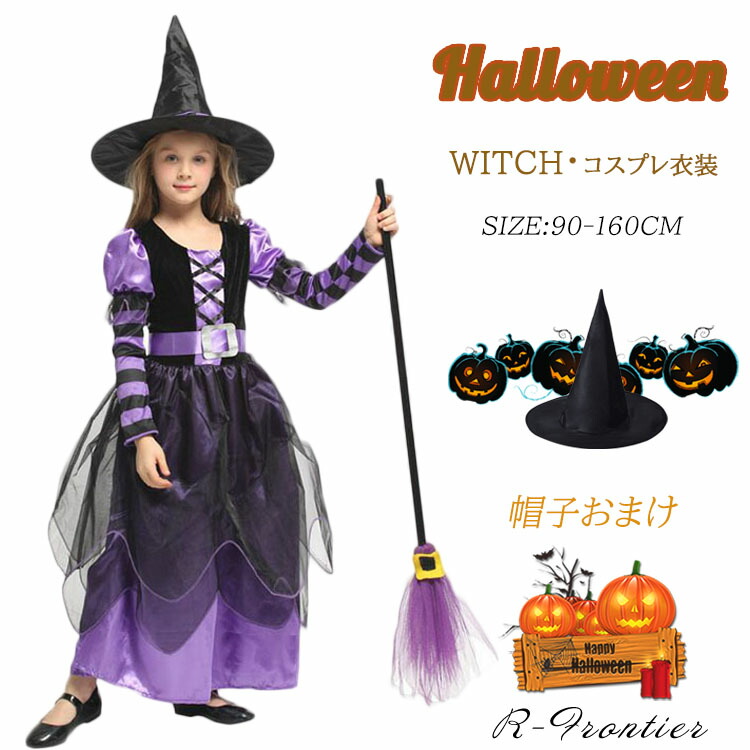女の子 ハロウィン 衣装 子供 魔女 ワンピース ハロウィン コスプレ 魔女 子供 女の子 衣装 仮装 可愛い ドレス キッズ ウィッチ 魔女っ娘 パーティー ハロウィーン 90-160