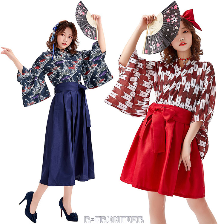 和装 ハロウィン ダンス 衣装 和風 袴 紺青 赤 レディース 高校生 ハロウィン コスプレ ハロウィン衣装 可愛い 着物