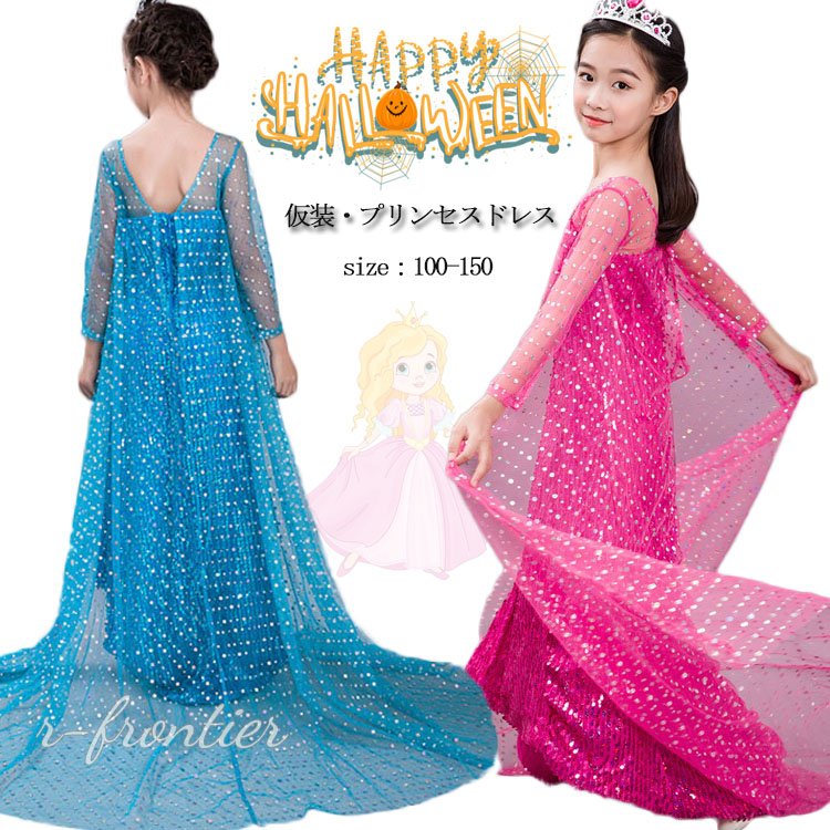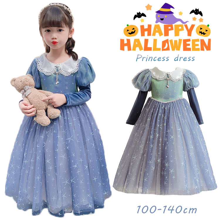 ハロウィン コスプレ 水色 ワンピース プリンセス ドレス 誕生日 プレゼント 記念日 仮装 衣装 コスチューム ドレス 仮装 女の子 110 110 120 130 140