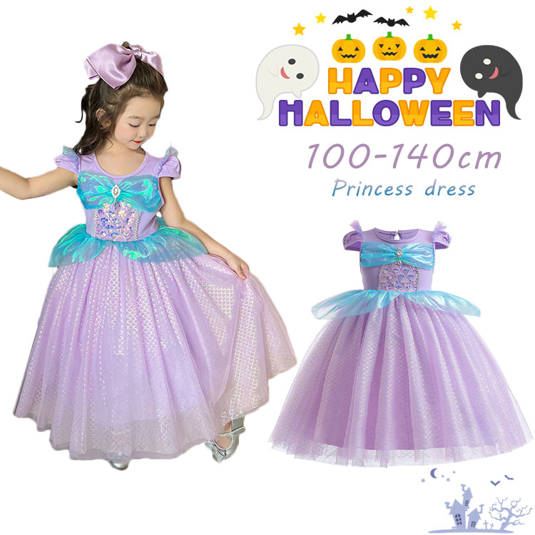 ハロウィン コスプレ 紫 ワンピース プリンセス 衣装 フルセット 仮装 女装 子供 衣装 コスチューム ドレス 仮装 女の子