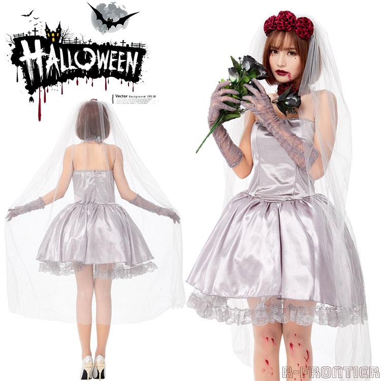 ハロウィン 吸血鬼 花嫁 コスプレ ワンピース 衣装 バー 白 花嫁 コスプレ 吸血鬼 花嫁 ドレス シルバー グレー