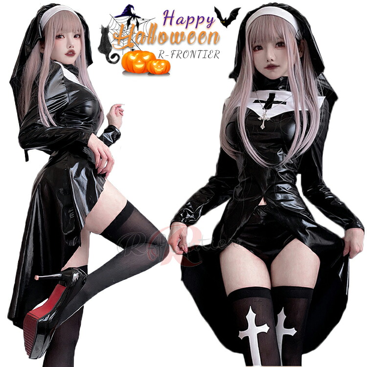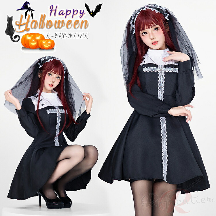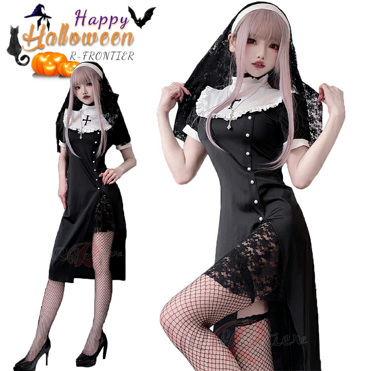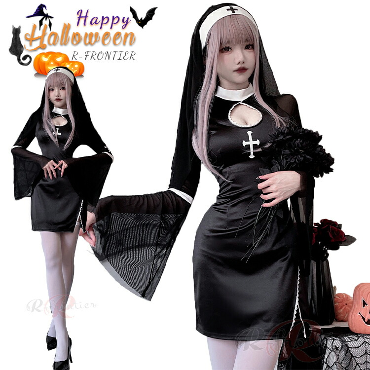 ハロウィン 仮装 大人 女性 シスター コスプレ セクシー 可愛い 修道女 聖女 牧師 宣教師 修道服 教会 黒