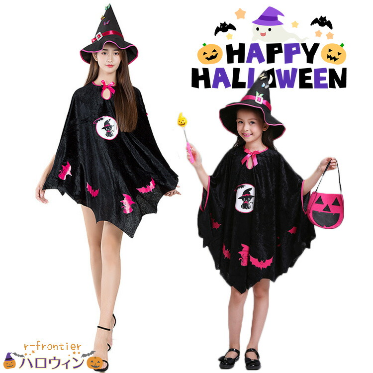 ハロウィン マント ハロウィン 仮装 黒猫 マント 大きいサイズ コスプレ ウィッチ ワンピース 3点セット 定番 親子 リンクコーデ 親子