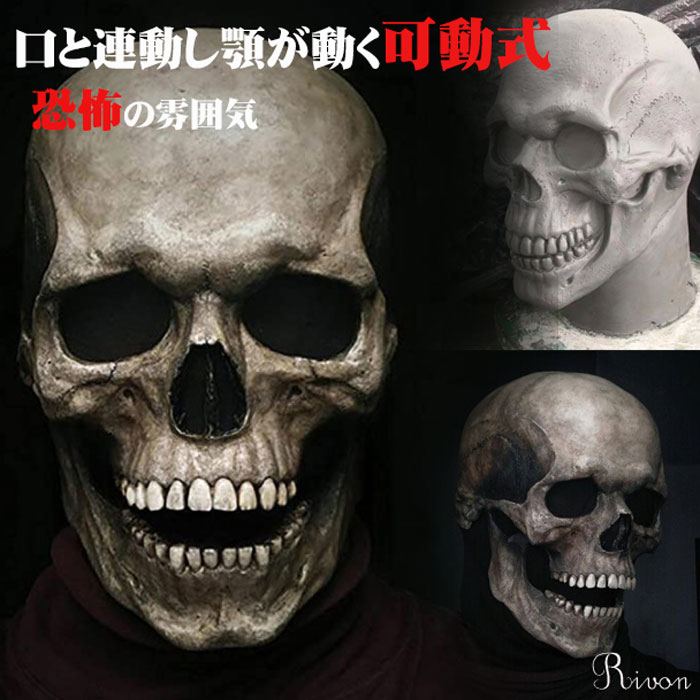 フルフェイス 可動式 仮装 あご 仮面 こわい 変装グッズ 骸骨 ハロウィン コスチューム 恐怖 かぶりもの ホラーマスク ドクロ コスプレ リアル 怖い スカルマスク