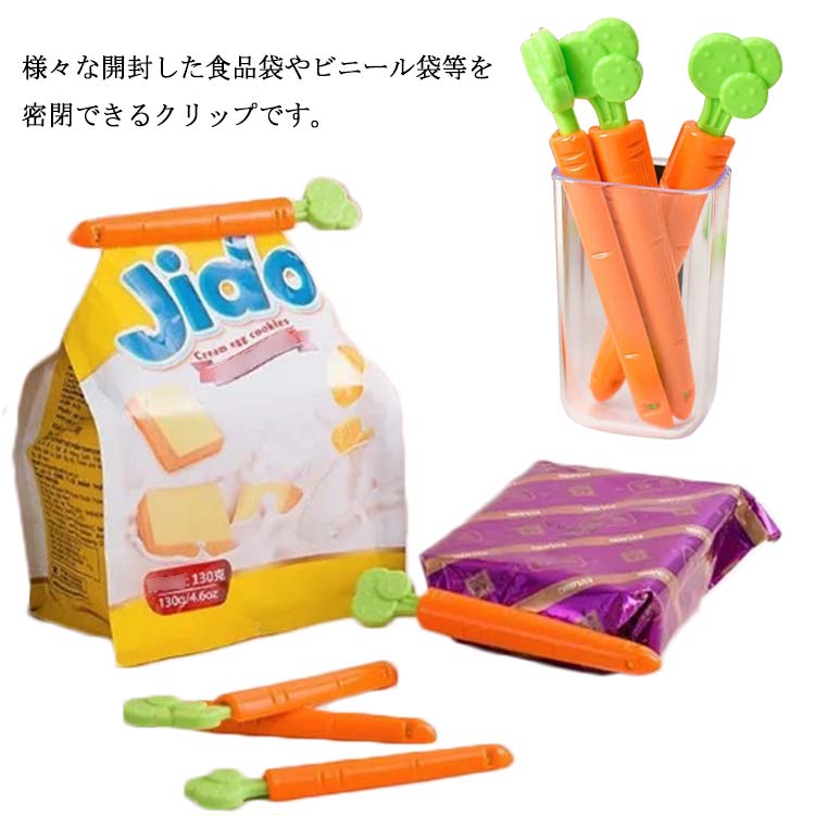 袋止めクリップ 密封クリップ 15個 にんじん シーリングクリップ 酸化防止 軽食保存 食材保存 湿気対策 キッチン用 食品袋クリップ マルチクリップ