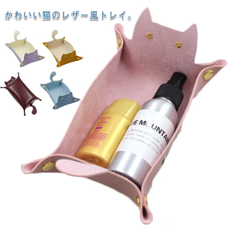 時計 ネコ アクセサリーケース レザートレイ 機能的 レザートレー 無地 猫 小物置き 指輪 メガネ 携帯 薄型 小物入れ フェイクレザー 日用雑貨 おしゃれ ギフト プレゼント 収納