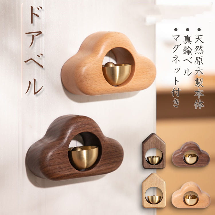 ドアベル ドアチャイム 風鈴 雲 雲形 マグネット式 新築祝い 引っ越し ギフト 優しい音 天然木製 ウォールナット 無垢材 呼び鈴