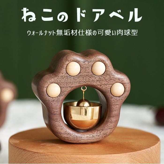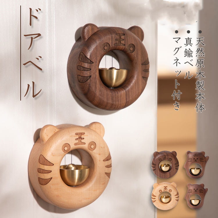 ドアベル ドアチャイム とら 虎 ネコ マグネット式 優しい音 天然木製 ウォールナット 呼び鈴 真鍮 引き戸兼用 新築祝い 風鈴