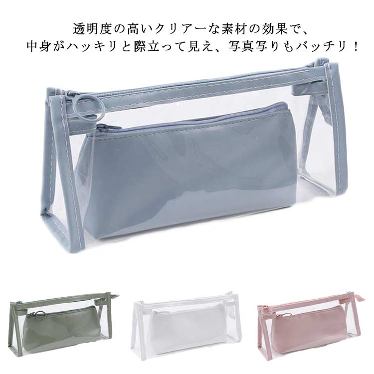 ペンケース 透明 大容量 クリアペンケース 透明筆箱 おしゃれ ペンポーチ 中学生 小学生 受験 透明ペンケース かわいい