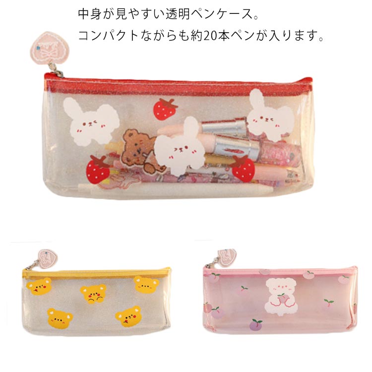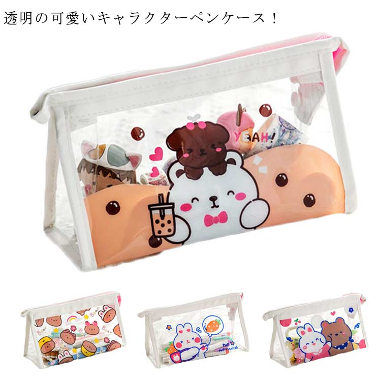ペンケース 大容量 筆箱 化粧ポーチ 小さめ 学生 女子 苺 熊 犬柄 おしゃれ ペンケース 三角立ち 半透明 ペンポーチ