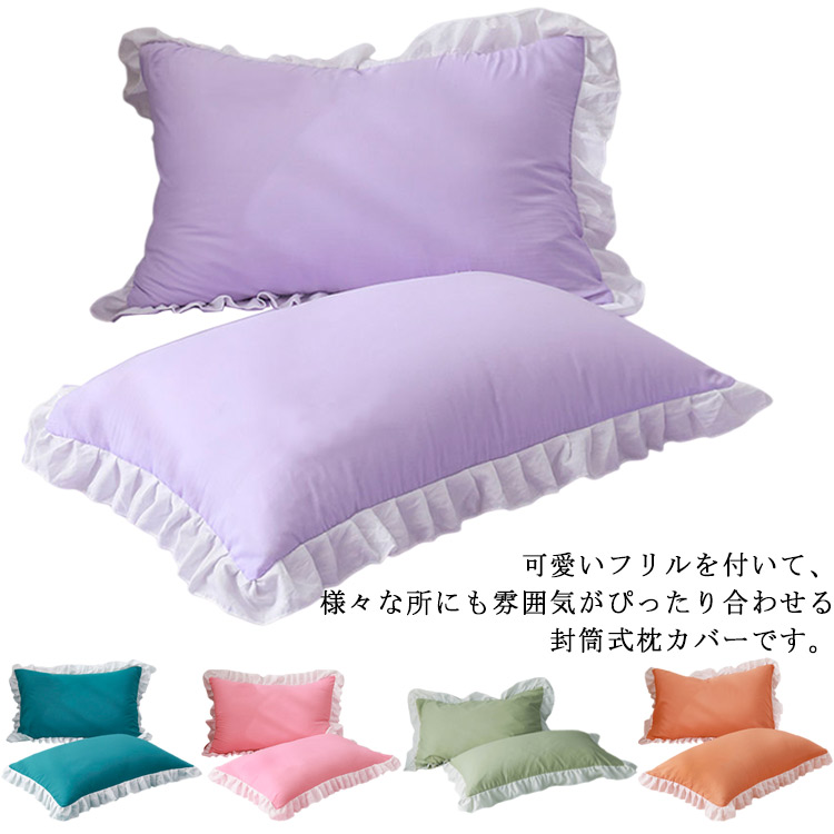 まくらカバー 2枚セット フリル付き 姫系 枕カバー ピロケース 春 夏 60×40 48×74 子供