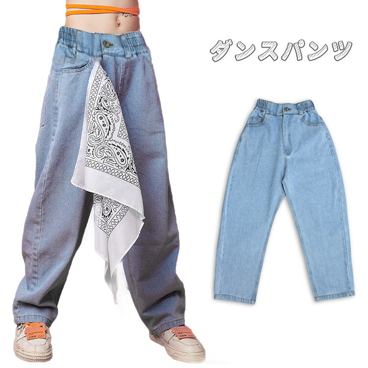 キッズ ダンスパンツ デニム 子供服 ダンス デニムパンツ キッズ ダンス 衣装 デニム パンツ 青 キッズダンス衣装 女の子 男の子 パンツ ロング丈 子供ダンス 練習着 キッズ ジーンズ ズボン
