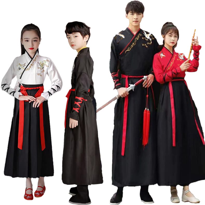 子供ダンス衣装 セットアップ 大人サイズ 黒 赤 おしゃれ 中華風 ダンスウェア 子供服 4点セット 女の子 男の子 学生ダンス 長袖 スカート 演出 応援ダンス 舞台 団体注文 発表会
