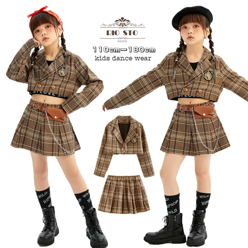 キッズダンス スカートセット チェック柄 ダンス衣装 女の子 チアガールキッズ ベビー マタニティ キッズファッション スーツ カジュアルセットアップ カジュアルスカートセット