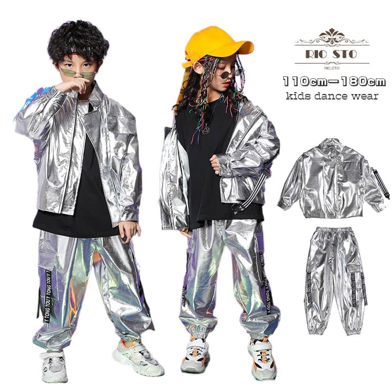 韓国子供衣装 おしゃれ シルバー キラキラ ダンス衣装 キッズファッション 上下セットキッズ ベビー マタニティ キッズファッション スーツ カジュアルセットアップ カジュアルパンツセット