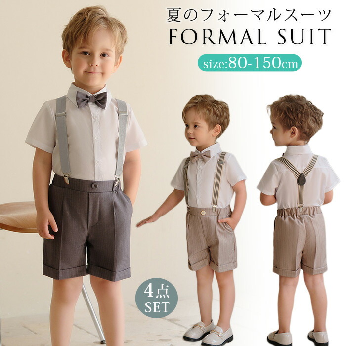 男の子 フォーマルスーツ 4点セット子供 スーツ 男児 ベストスーツ 半袖 半ズボン 夏用 子供服 結婚式 ピアノ 発表会 誕生日 90 100 110 120 130 140 150 160 オ