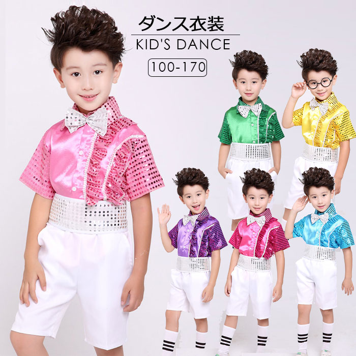 ダンス衣装 4セット 男の子 ピンク ブルー グリーン イエロー パープルキッズ ベビー マタニティ キッズファッション スーツ カジュアルセットアップ カジュアルパンツセット