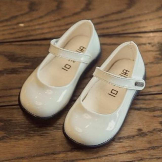 17.5ホワイト白ローファーフォーマル子ども子供女の子エナメルぺたんこフラットキッズガール入学式卒業式発表会結婚式パーティーおしゃれ可愛い無地シンプル
