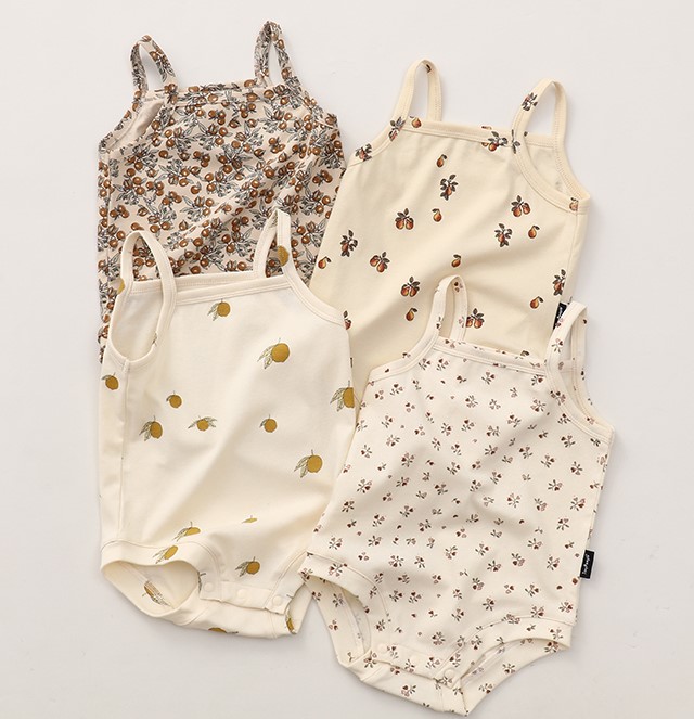 キャミソールロンパースベビー服赤ちゃん女の子男の子ボタンカバーオールコットン可愛いおしゃれ韓国ナチュラル66~100春夏秋綿ベビー部屋着パジャマおしゃれ花柄ハートオリーブベージュ北欧インナー肌
