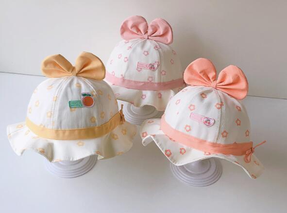バケットハット ベビー赤ちゃんコットン綿100%絞りリボンさくらんぼおしゃれ可愛い韓国0歳~3歳柔らかいキッズ日よけカジュアルナチュラルシンプルプレゼントギフト春夏秋ハット帽子