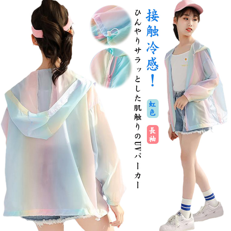 可愛い UVカットパーカー 羽織 紫外線対策 薄手 女の子 110~160キッズ ベビー マタニティ キッズファッション トップス パーカー