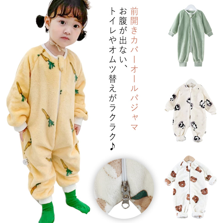 軽くて暖かい お腹が出ないつなぎパジャマ 着ぐるみ 長袖 長ズボン 裾リブ トイレやオムツ替えも楽ちん ベビー服 70 80 90 100 110 120 クリスマス