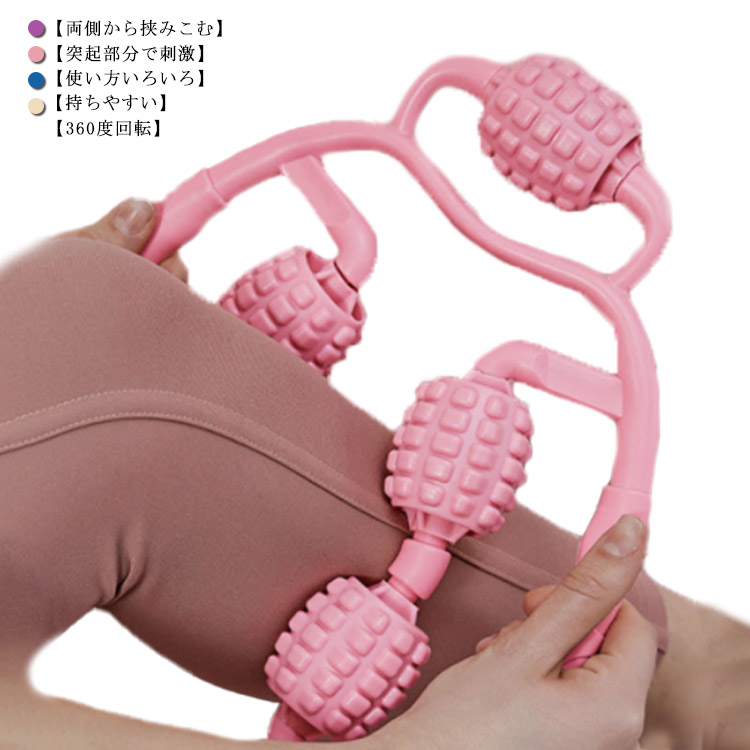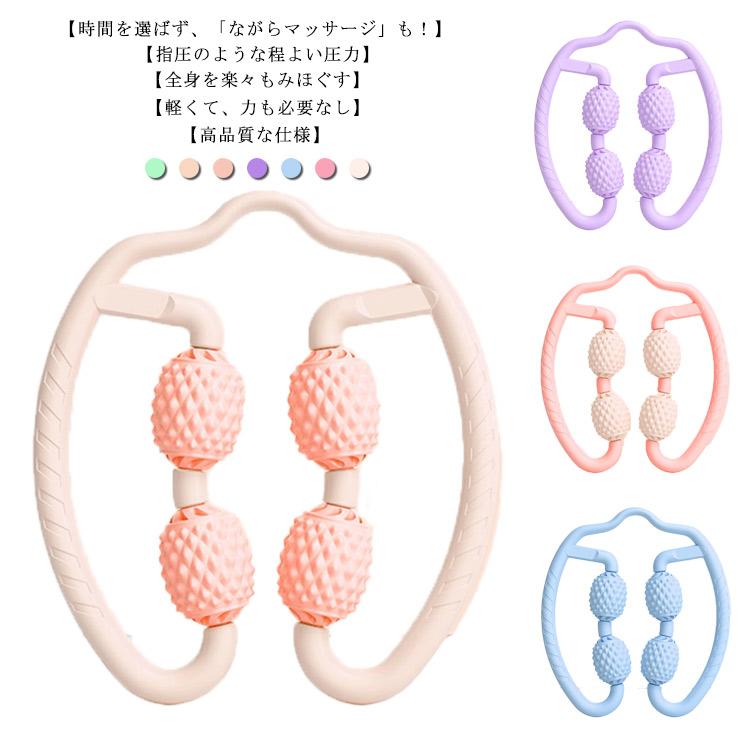 マッサージローラー 指圧ローラー 自分磨き 脚痩せ 脚やせ 手持ち 挟む式 太もも 美容 ふくらはぎ セルライト 筋膜リリース おうち美容 コンパクト 腰 むくみ