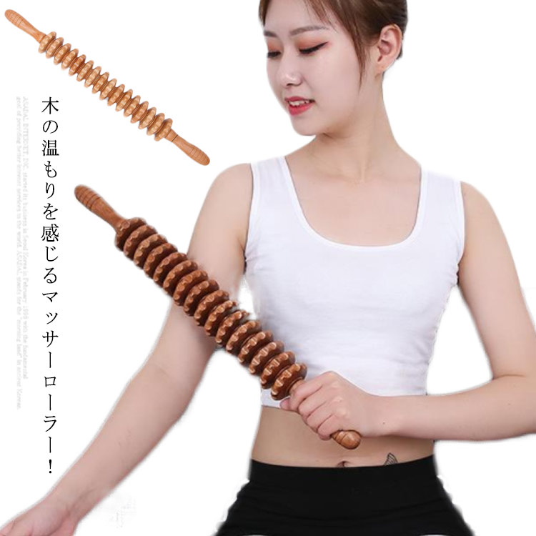 木製 マッサージローラー筋膜リリース マッサージスティック 首こり 筋膜ローラー マッサージ棒 ウッドローラー