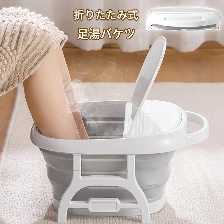 フットバス 足湯バケツ 折りたたみ 収納 防水 軽量 大容量 おしゃれ 足湯 足湯器 足湯桶 蓋付き バケツ 足熱対策 足湯用 ストレス解消 保温機能 家庭用 キャンプ 出張 旅行 釣り 洗車 アウト