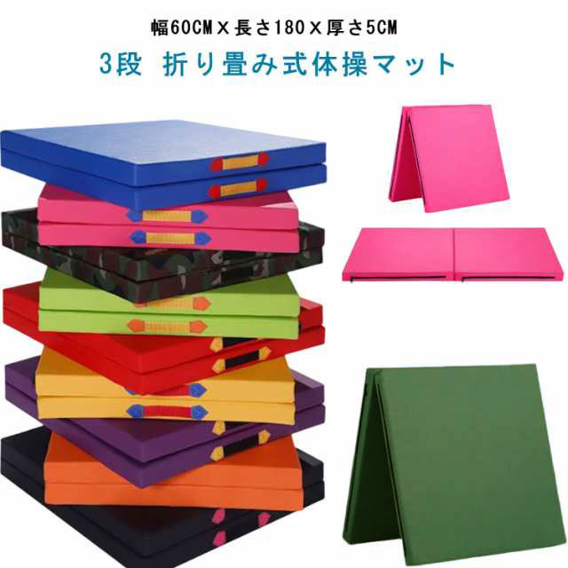 三つ折り 折りたたみ式 ストレッチマット 体操トレーニング マット ジムマット 体操マット 防音 運動マット ダイエット器具 取っ手付き 保育園 幼稚園 小学校 万能マット