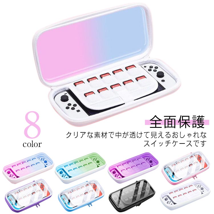 収納バッグ 大容量 Switch 携帯ケース 耐衝撃 持ち運び ストラップ付き 収納ケース Switchカバー コンパクト グラデーション かわいい おしゃれ 綺麗