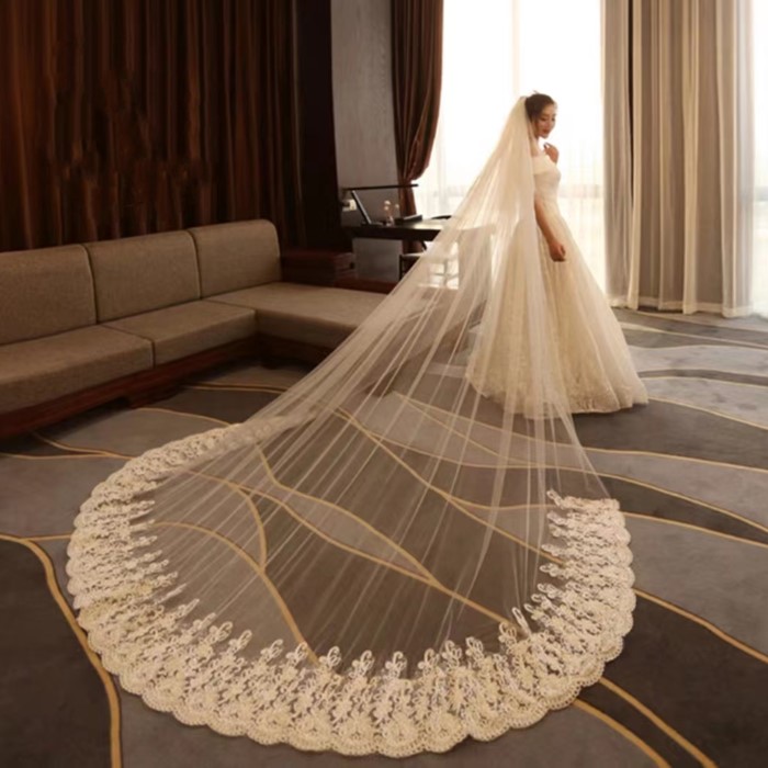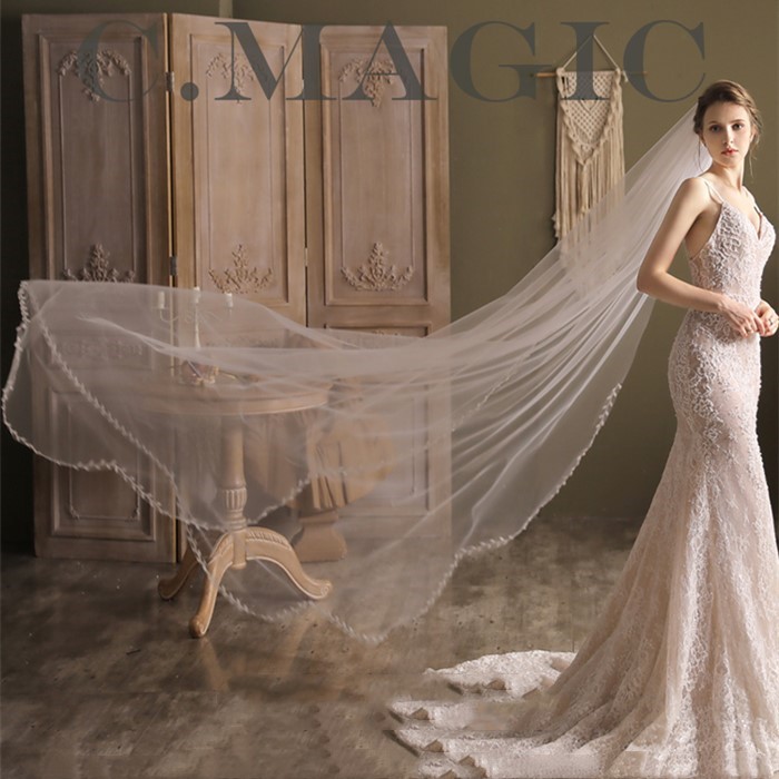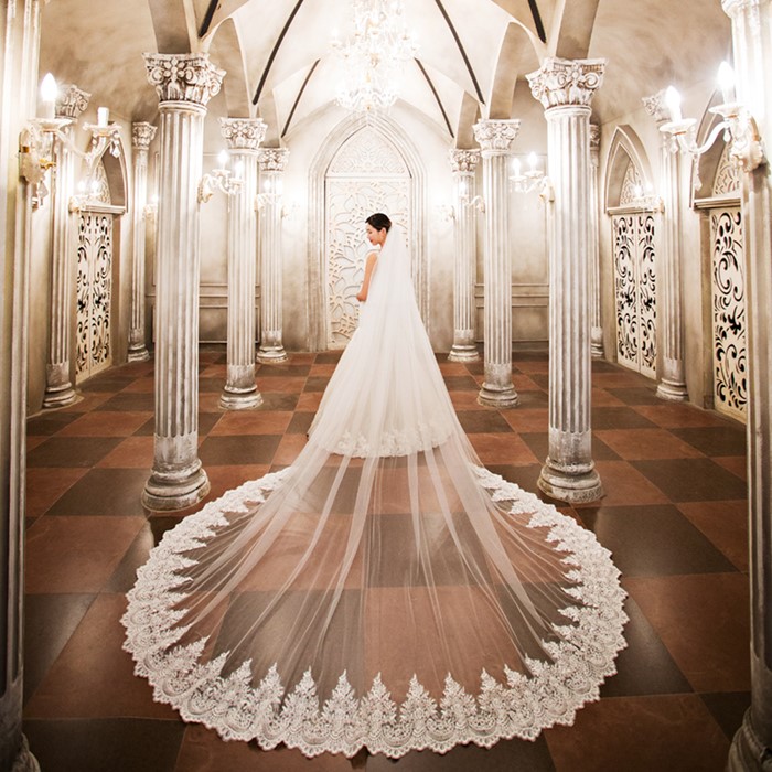 ウェディング ベール ロング 結婚式 挙式 二次会 ウェディング小物 フホワイト 3m サイズオーダー