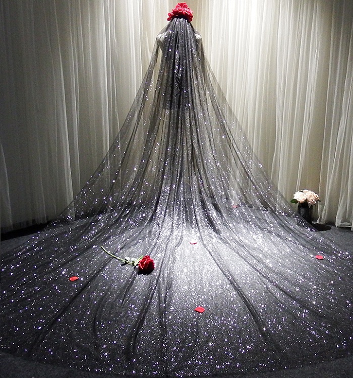 ウェディング ベール ロング 結婚式 挙式 二次会 ウェディング小物 ブラック 3m サイズオーダー
