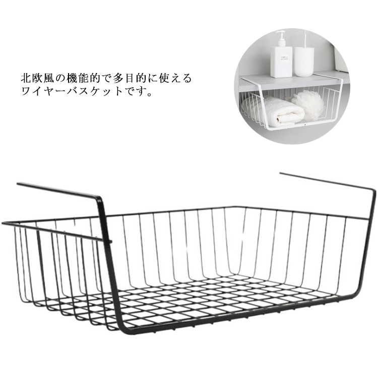 バスケット ワイヤーバスケット 吊り下げ 収納ケース クローゼット 戸棚 小物入れ 卓上収納 デスク下 取り付け簡単 収納バスケット