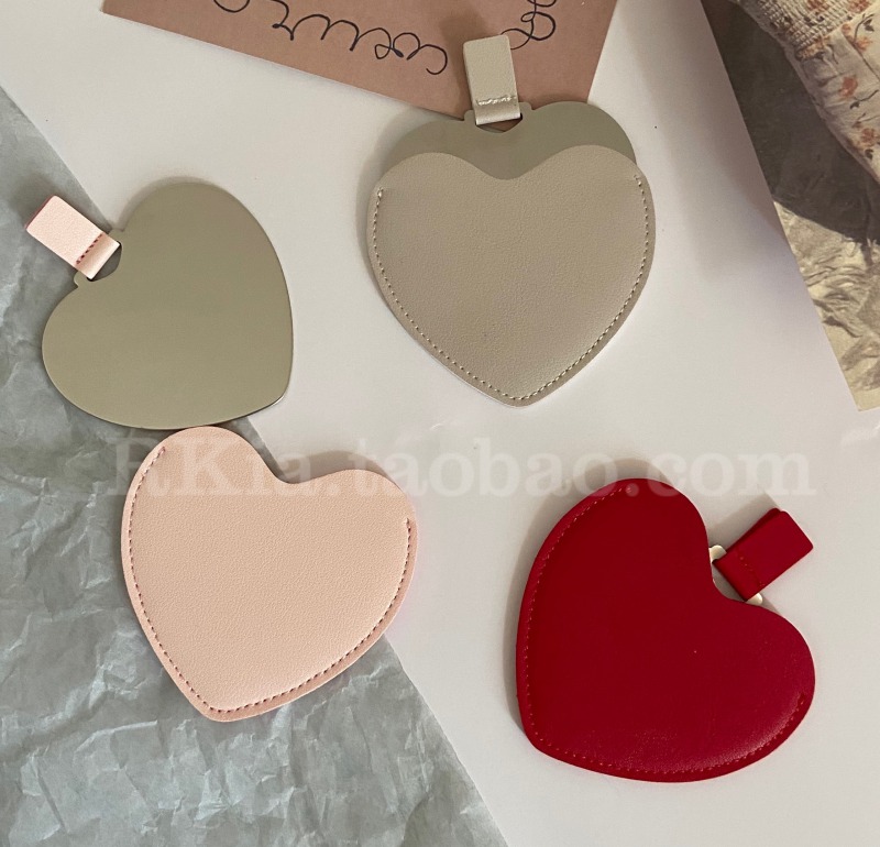ハートコンパクトミラー3色手鏡ミラー鏡持ち運びレトロ小さい軽いコンパクト可愛いおしゃれ韓国雑貨ハンドミラー携帯ポーチ化粧メイク角度薄型レザー革赤レッドピンクグレーポーチケースミニ
