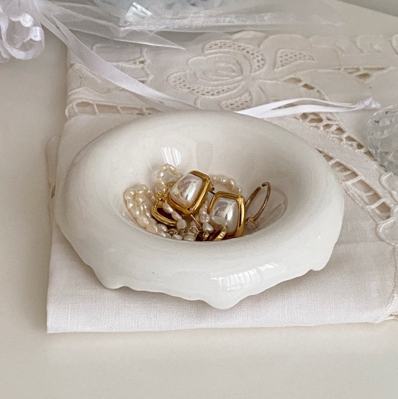 プレート陶器セラミック白ホワイト韓国雑貨北欧インテリアディスプレイアンティークかわいいおしゃれ収納小物入れアクセサリー小さい小さめ整理ケース卓上トレイ丸円置物ピアス指輪ネックレス鍵ミニシンプル