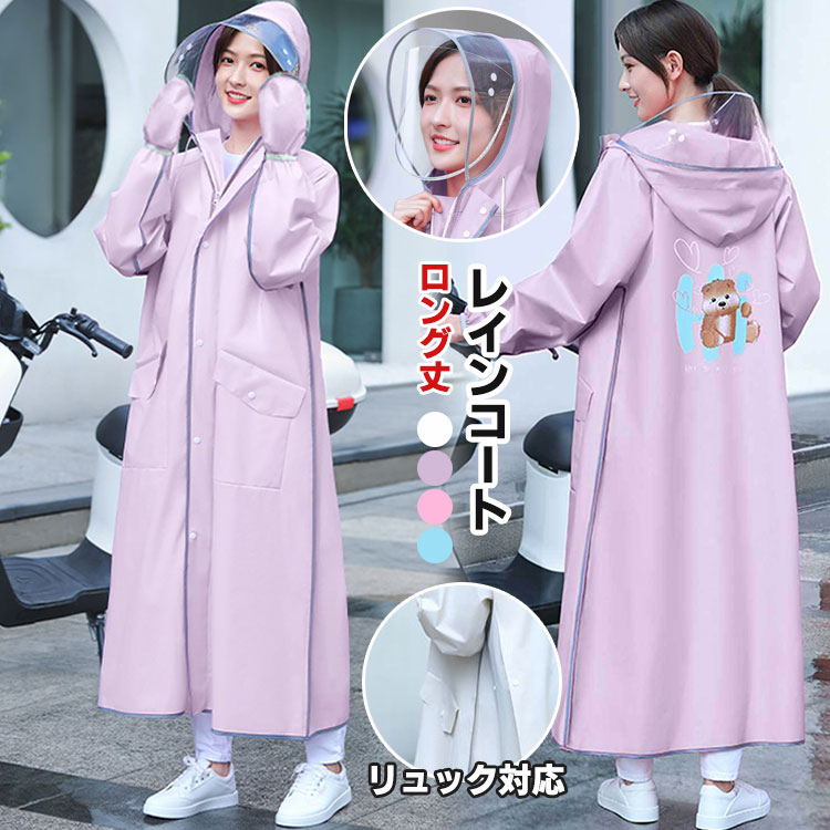 ロング丈 レインコート 男女兼用 通勤 通学 ゆったり つば取り外し可能 2 3レディースファッション レインウェア レインコート
