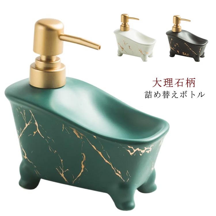 セラミック 詰め替えボトル ソープディスペンサー ディスペンサー 北欧風 陶器 ボトル お風呂 洗面用品 バス トイレ お風呂 洗面台 容量350ml 大理石柄 ハンドソープ