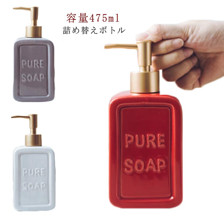 シャンプーボトル ソープディスペンサー セラミック ボトル ハンドソープ 容量360 400 440 詰め替えボトル 詰替ボトル 陶器 シンプル ハンドソープ 北欧風 北欧 和風