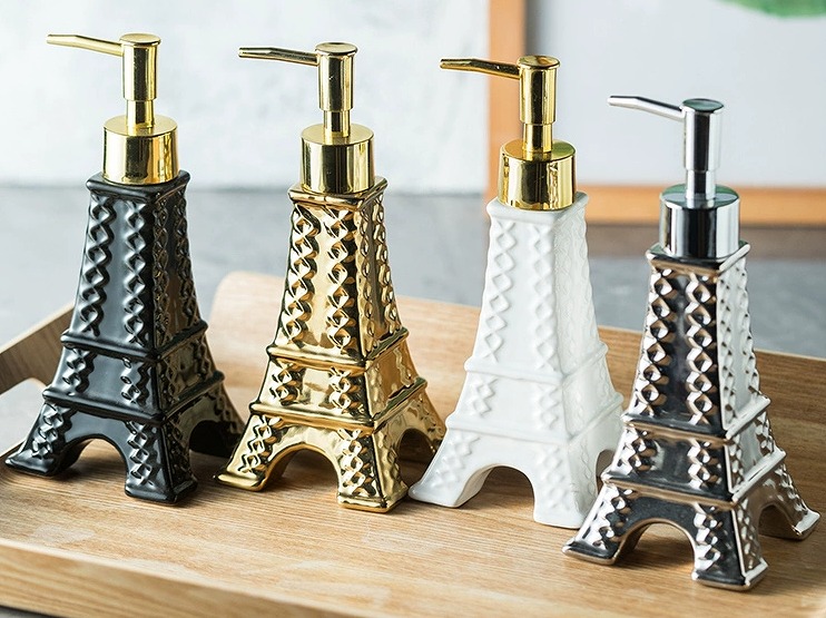 詰め替えボトルホルダー白ホワイトゴールド花柄レトロ韓国雑貨インテリア北欧おしゃれ洗面所ハンドソープ容器収納大容量ソープ陶器ポンプソープボトル筒形ソープディスペンサーかわいいフラワーアンティーク可愛い