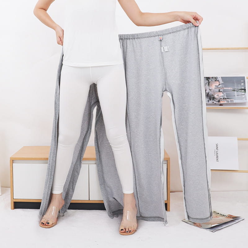 パジャマ ズボン 通年用 介護用 セミオープン おむつ交換 お着替えサポート 全開両脇ファスナーあきズボン 腰開きパンツ 柔らかズボン 骨折患者 着脱簡単、男女兼用薄着 M-3L 介護用衣料 入院用ズ