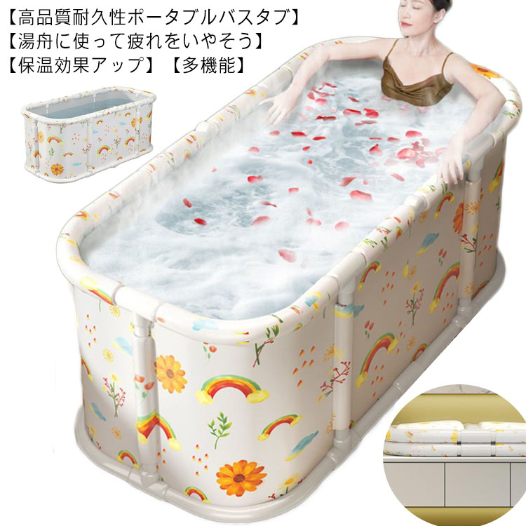 ポータブルバスタブ 折り畳み 浴槽 バスタブ 折りたたみ浴槽 コンパクト 大人 子供 持運び 使い捨て浴槽カバー5個付 簡易風呂 SPA キャンプ 保湿機能