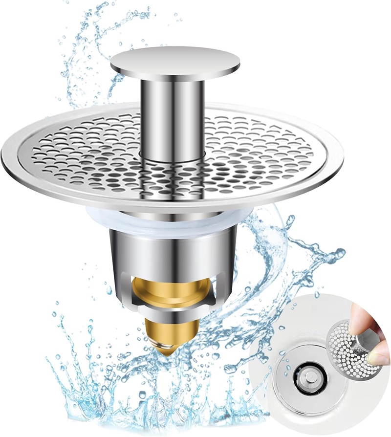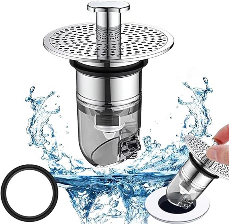 洗面台 排水栓 ポップアップ 排水口 洗面台 排水溝栓 ステンレス製 ごみ受け 目詰まり防止 虫対策 防臭 掃除便利 内径32mm-40mmの排水口に適用 洗面所 浴槽 台所に使える