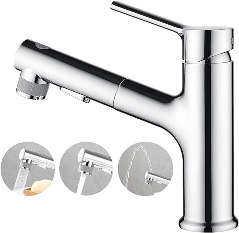 洗面蛇口 噴水機能付き 浴室用水栓 洗面 洗髪用 混合水栓 ホース引出し式 シングルレバー混合栓 3way出水モード 泡沫水流 シャワー水流 クロムメッキ